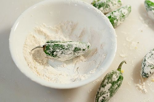 Here, the chiles are raw, not roasted first. The only cooking they have is inside their batter in butter by a sauté pan stovetop, not deep fried in oil.